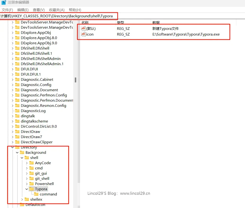 Typora右键新建项command 点击Typora,右键新建项,命名为command, 修改右边窗口的默认文件,填写文件路径(带有英文引号),在末尾加上%V切记:是typora的绝对路径加上英文双引号。双引号结束后再加上 %V