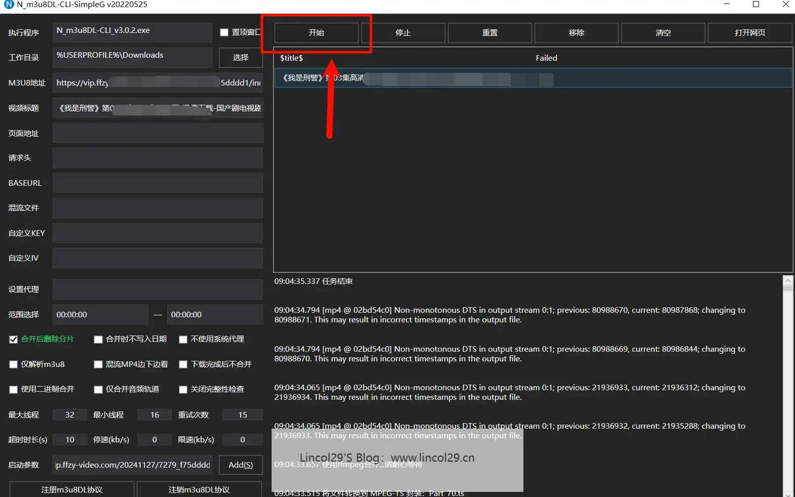 - 会弹窗跳到 N_m3u8-CLI-SimpleG_List 界面,点击开始