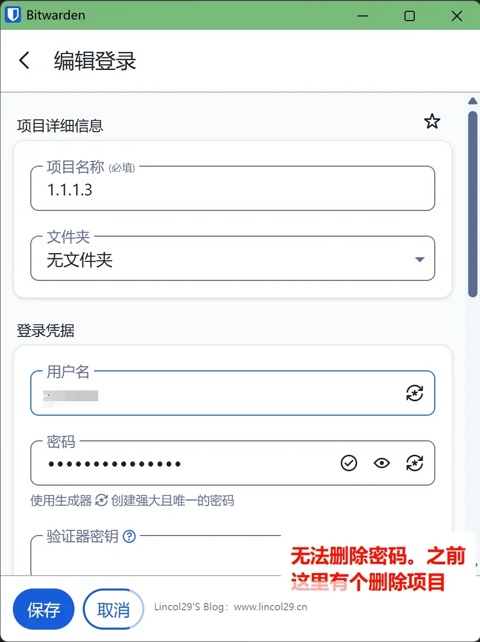 Bitwarden浏览器端无法删除密码
