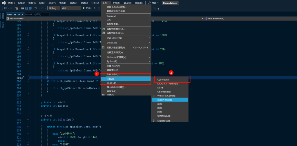在Visual Studio 工具 – 主题 – 选择刚刚下载的主题文件